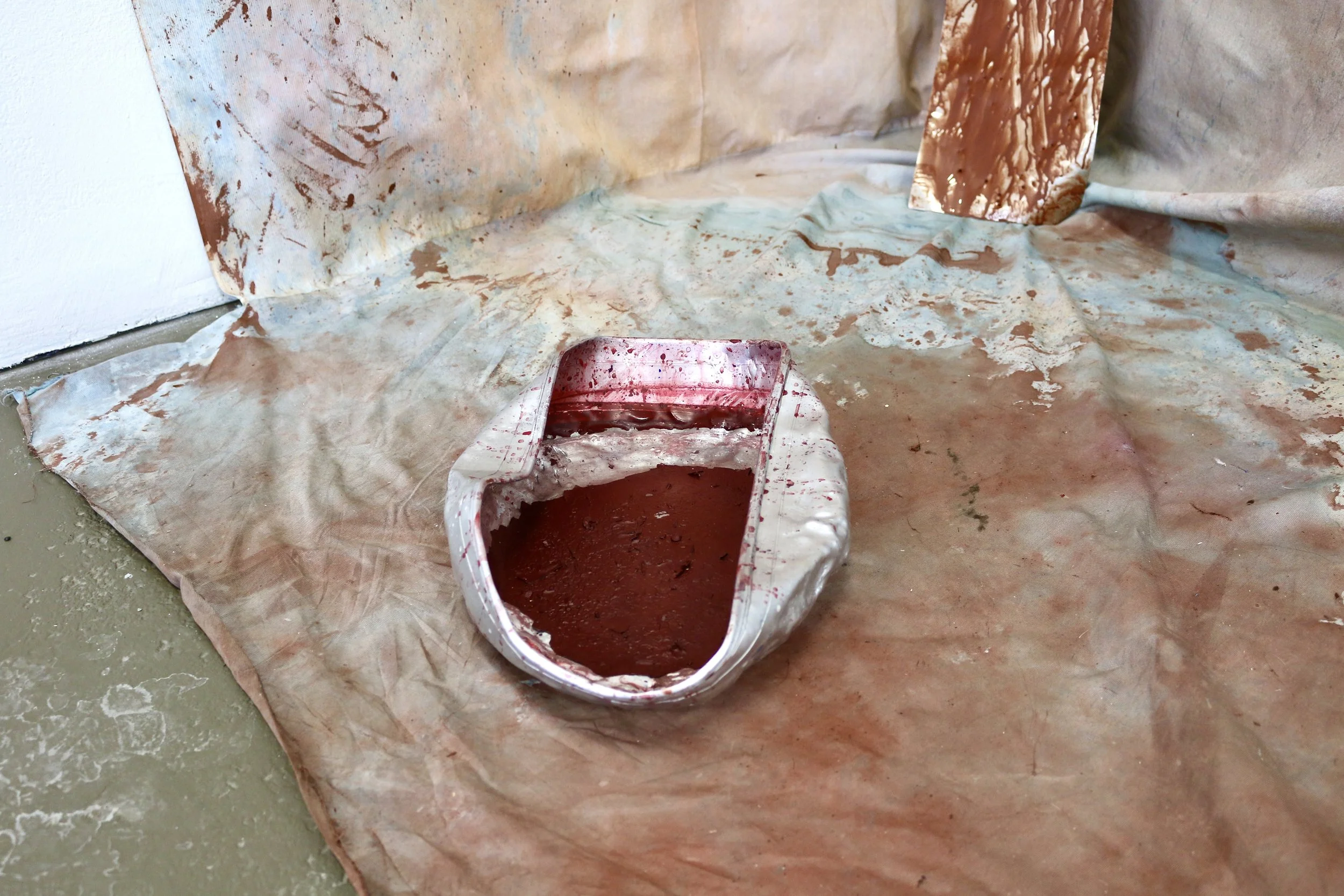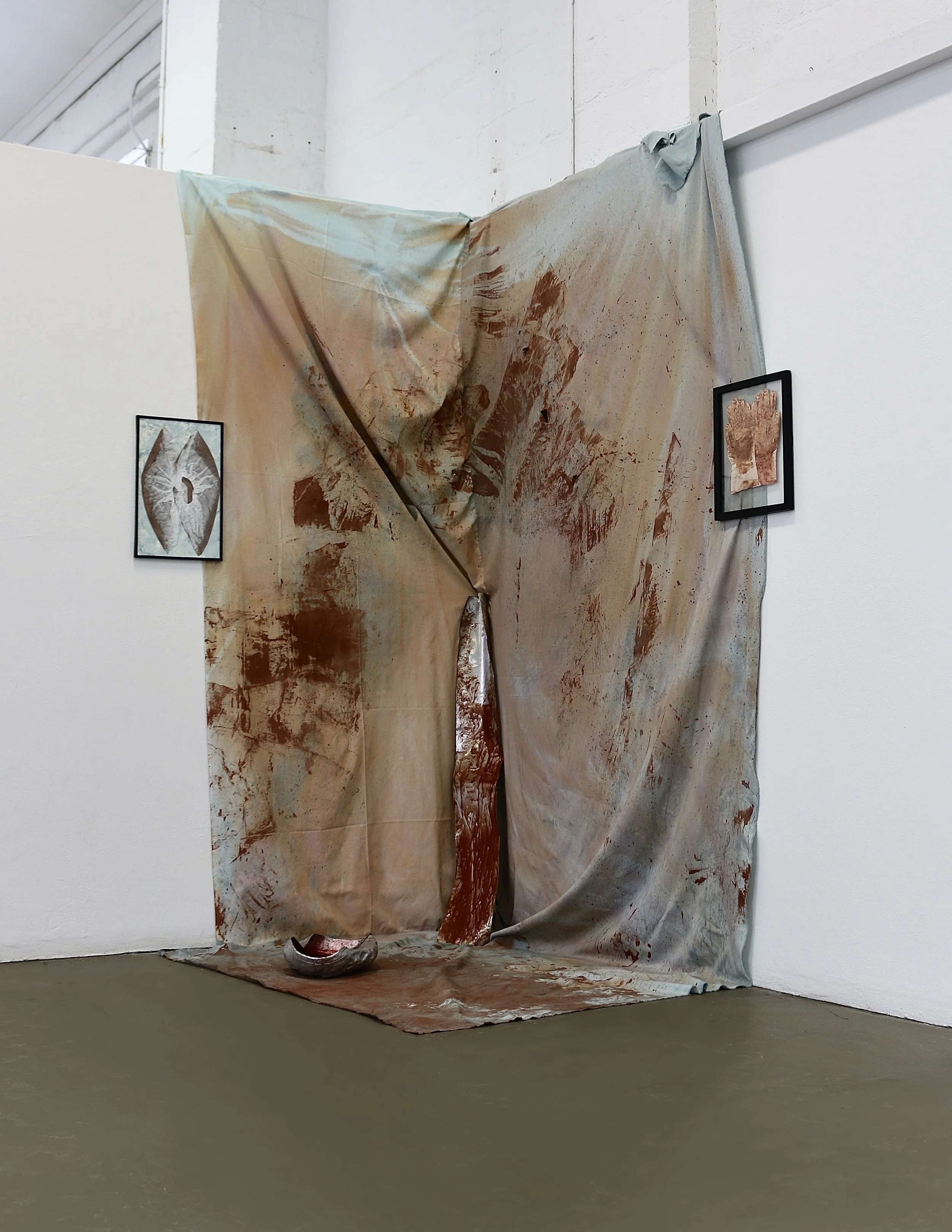 Fabric, metal, glass, aluminum, acrylic paint, wood
